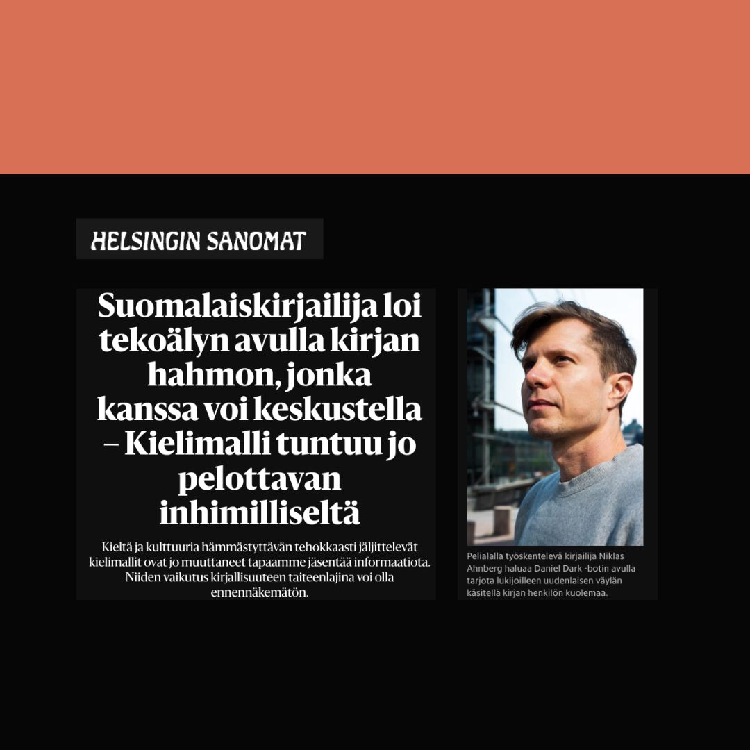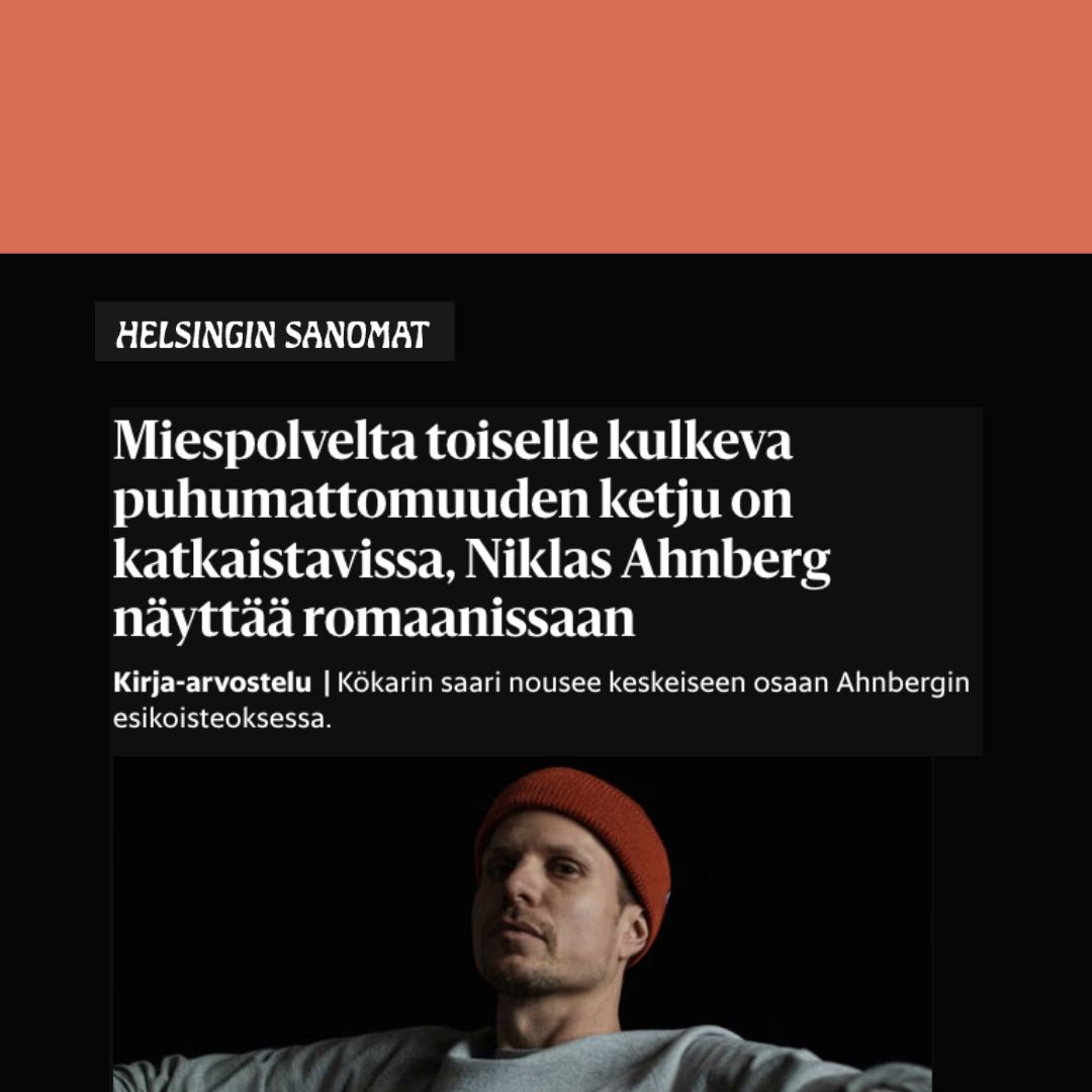 Läs artikelnEtt urval. Ahnberg har även intervjuats i Kauppalehti, Kodin kuvalehti och flera andra nationella medier.